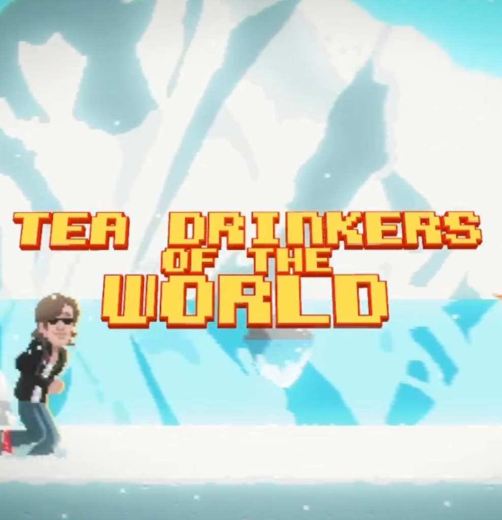 “….. for Tea Drinkers I wanted to put something together that was a joy to look at, told a story and was festooned with colour to counteract these grey old times. I used to be a huge gamer as a kid and thought a classic 16-bit look would be a timely throwback to a more innocent, simple age, where a pandemic was something that happened on a busy kitchen-top. Matt Hutchings who directed and animated the video was also a gamer and knew exactly where to take the concept. He’s done an incredible job… he even made a sprite out of my Gretsch White Falcon – for this alone I will love him forever!