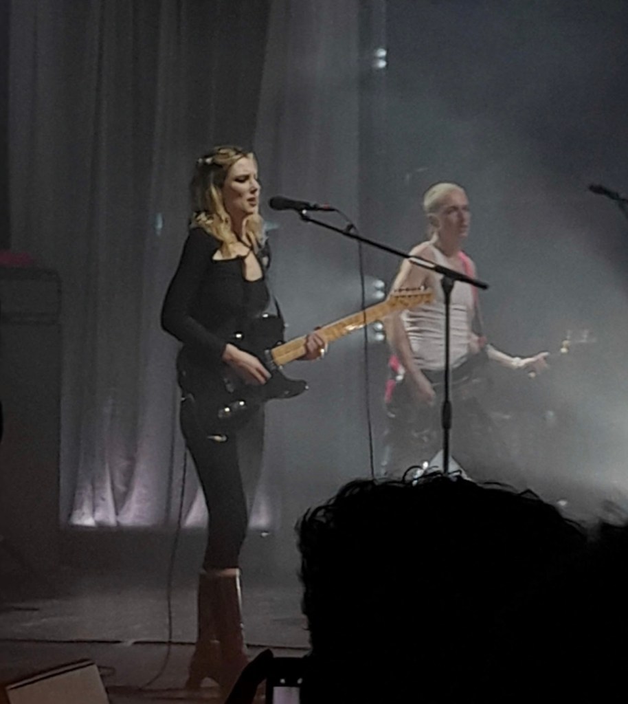 Theo appeared, raising his arms at the crowd, playing the role of hype man to a tee. Joff came on with his usual modest swagger, and Joel got himself seated, clearly buzzing with energy. Ellie slipped on stage quietly, but soon transformed into a bit of a goddess – shredding her guitar in full-on guitar hero style, singing in a focused, passionate way, holding the notes long with touches of vibrato, pushing, staying on track, despite the noise of a thousand fans singing along.