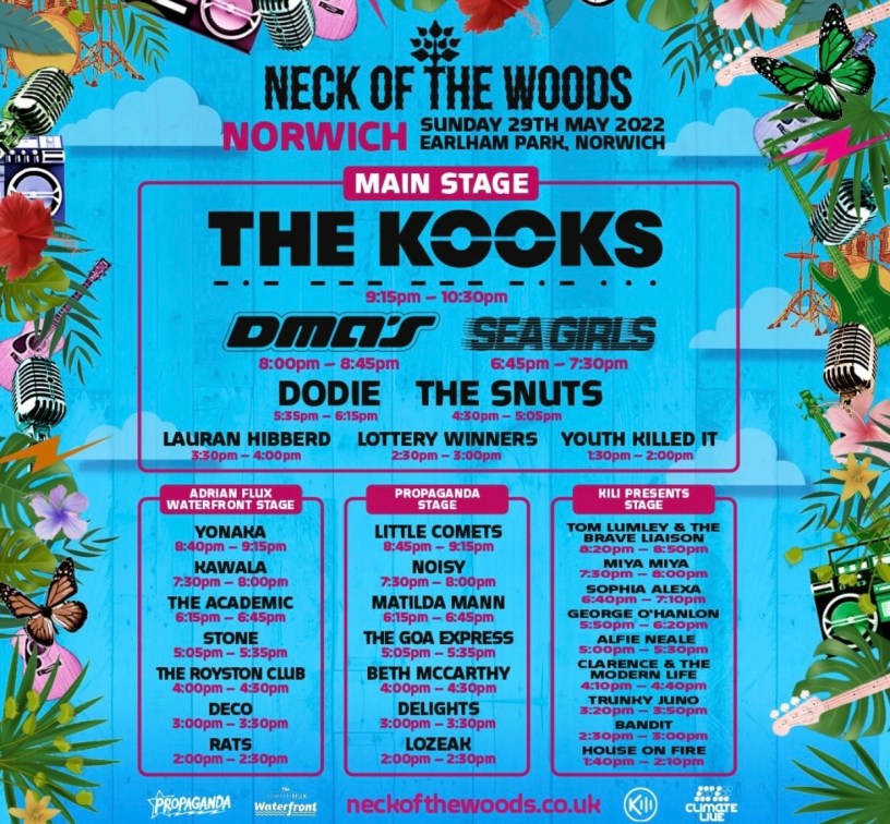 Neck of the Woods is a brand new music festival – that’s a very exciting thing to be writing, considering what the live music scene has been through over the past couple of years. The festival – presented by Kilimanjaro Live – takes place at Earlham Park on the edge of Norwich on 29th May and promises an incredible four stages of music as well as lots of street food vendors, bars and a VIP area. NOTW is an all ages festival, which is a good touch – in my book, you’re never too young to be introduced to fantastic, independent music. There are currently some final tickets on sale via the NOTW festival website.