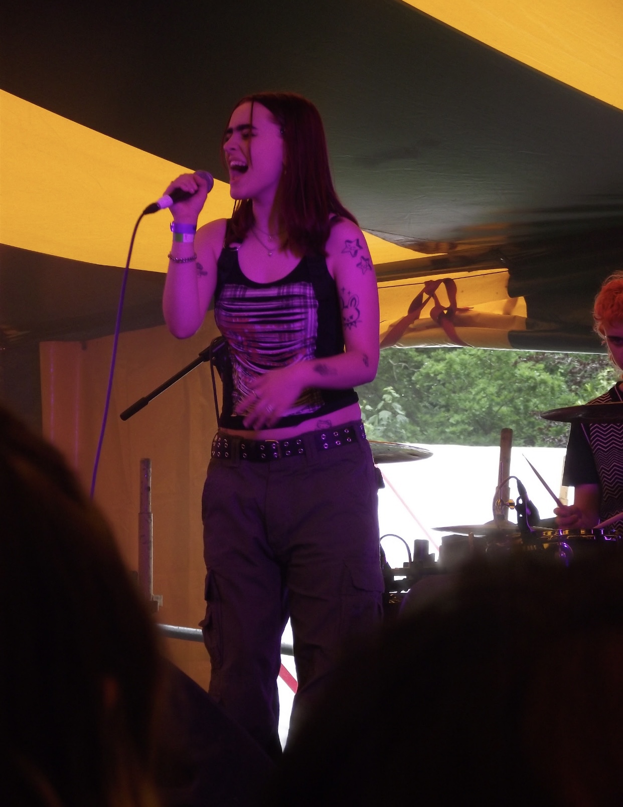 Back to the main stage for Lauran Hibberd who I was really happy to see added as a late addition to the line-up, having missed seeing her a few times in other places. She has perfected her brand of slacker pop punk, distilling and bottling it into a slick show, but one which stays true to message. She was fizzing with attitude, fully engaging with the crowd, and just brilliant to listen to. The set stayed high energy throughout and included a preview of her foot-stomping new single ‘I’m Insecure’ (riffing, as only she could, on her battle with irritable bowel syndrome).