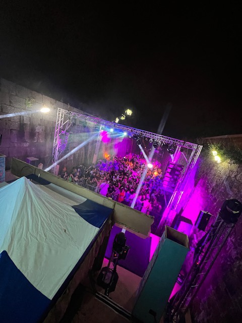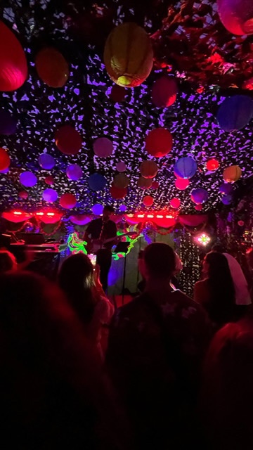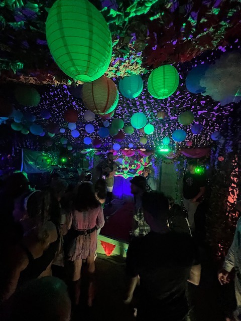 So that was the Neon City but that was only the half of it. As you stroll further into this man made town your spoilt for choice with loads of little venues dotted along the cobbled street. It wasn’t just all Dj’s, Wonky cater for all tastes with the beautifully titled Soul Garden hosting some of Jerseys top Singer songwriters, again what captures you is the amazing installations and different colours. The ceiling was a wash with hundreds of lanterns and the yellows, pinks and blues definitely give the eyes a feast as we listen to cracking sets over the two days from the likes of Jared Crespel, Phoebe Over and Axon Bower, the getaway frontman Drew Goodwin and lead singer from The Taratulips Mr Nic Dinnie filling up the Saturday showcase while on the Sunday we saw Ben Shea, The Riffs, Von Cassidy and brit school attendee Hamish Brodie all showing the crowd that Jerseys songwriting talent can hold its own to any nation. Also along the make shift high street we had Club Apocalypso playing some cool funk and grooves feat The French Funk master himself Stefunk, Radio Reeni with her mix of 80’s classics and Dj Andy Manson keeping this little night clubs floor full and bouncing. Thats not all as the Dirty Disco was pumping out the tunes in the toilet area and the Cosmic Disco has its doors open all day long and featured back to back sets from those fantastic local Dj’s including Misty vs Mawson, Radio Reeni vs Spim and the legend Tony Safe Going Back to back with Kruise.
