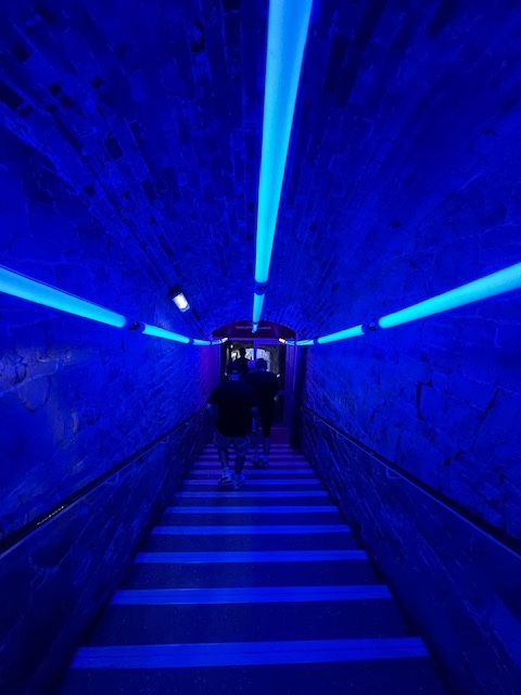The main entrance to the festival was through the centre itself but it wasn’t your usual entrance with beefy looking security guards and a police presence that resembles a well known itv drama from the 90’s. Instead of the high vis cladded body builders we were met by Wonky Airlines pilots and multi coloured uniformed air hostess. After an extremely polite bag search and ticket check you were led down a fantastic neon lit tunnel and out into what can only be described as a futuristic party town perfectly called The Neon City. The first thing that strikes you is the abundance of colour, huge walls painted with psychedelic murals and the crowd itself donned some ore inspiring outfits. One thing was obvious, this place will be a vision of spectacular illumination once the sunsets and the night rolls in.