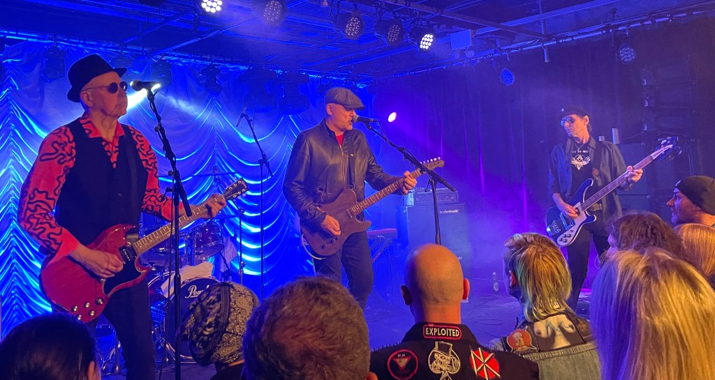 Wingmen went on slightly later than advertised but they come on stage to an enthusiastic crowd, and it’s plain to see all the band members are happy to be there. It’s pretty easy to tell who in the crowd is there for which band member and their parent band; a guy with a trilby hat for The Ruts DC, a fair few Stranglers t-shirts and pin badges, and a couple of the more goth persuasion showing their Damned colours.