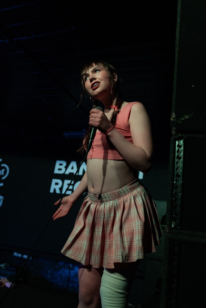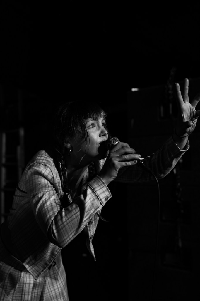 Also performing on the same night was RETROPXSSY who has been making a name for herself with live sets across the country and the world. She tells stories through music, theatre, hip hop, dance, punk, sweat, eye contact. Songs about power, songs about desolation, songs about tits, she explores womanhood in the middle of the mosh. Growing up in the South West, retro cites seeing The Prodigy at Glastonbury aged 12 as igniting her need to perform. Today, this burns brighter than ever. ‘retro reclaims the pit like a post-feminist fireball’. (Brian O’Neill – Dimple Discs) Her genre defying sets invite total immersion. Hip hop blends with punk, jazz, dance, electronica. Music blends with theatre. She is always looking to experiment and play.
