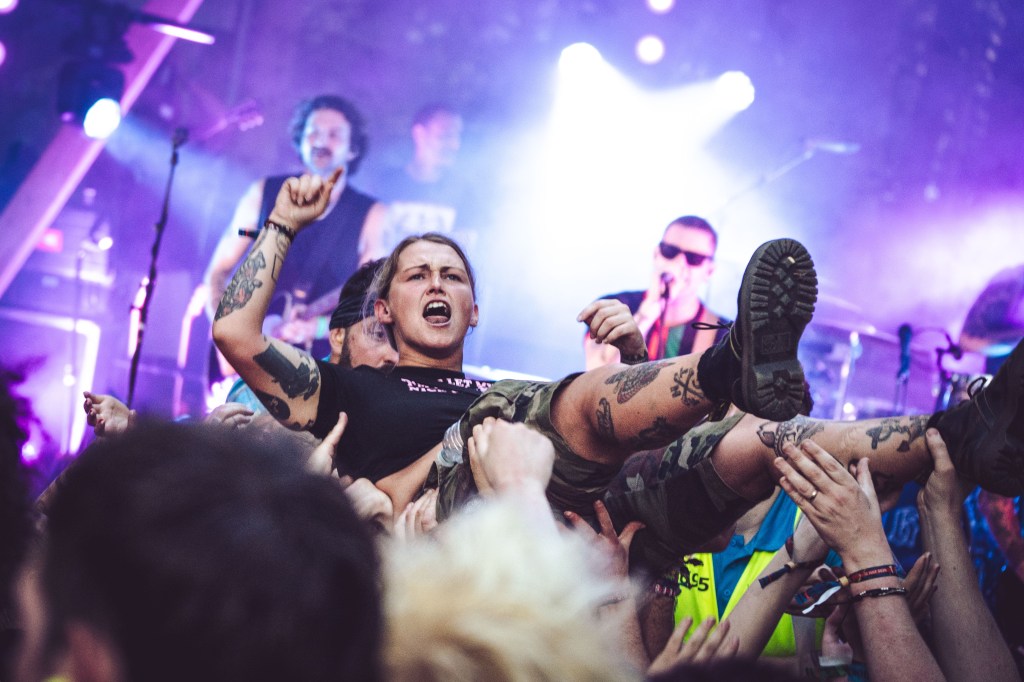 We then caught up and comers Girlband! At the NEU stage followed by favourites Vukov on the main stage before one of the world’s last performances of Californian legends Letlive. Reuniting for a final world tour it was absolute chaos in the best way. Saying farewell to racks such as Muther and dreamers disease before being cut off early in safety concerns as lead vocalist Jason Butler climbed to the roof canopy of the main stage, leaving the microphone hanging from the stage lights as a “fuck you” for cutting their set. Leaving quiet the impression on the audience