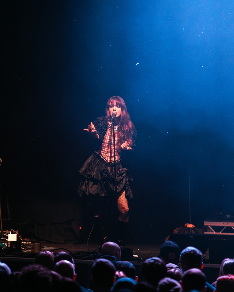 She flowed effortlessly into ‘80s Mercedes’ and ‘People Still Show Up’. She moved across the stage with ease, her connection with the audience electric yet authentic. Between songs, she chatted casually, sharing stories about the tracks and joking with the dedicated fans pressed against the barricades. The staging leaned more towards intimacy than spectacle, with just a few overhead lights, haze on stage, and a subtle glow that complemented rather than overshadowed her performance.