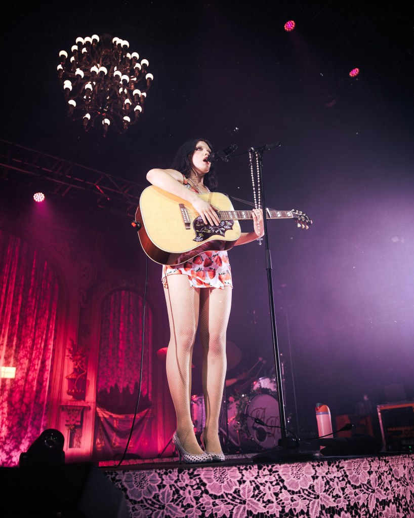 Next, she recounted the story behind her recent EP “voyeur,” reflected on choosing its name, and performed one of my favourite tracks from the project, “don’t ask questions,” a raw acoustic song full of emotion. She then played her biggest hit, “first original thought,” and a fan favourite she had temporarily dropped from the setlist but later reintroduced: “CRUSH!”
