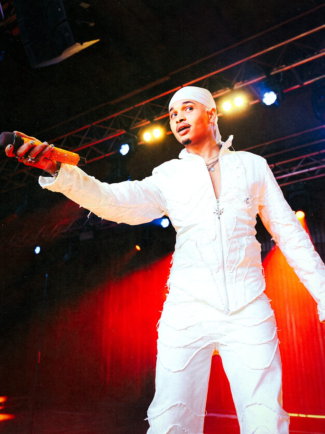 Then it was time for the main event. Destin came on stage with a glass of Aperol spritz, wearing a sharp white suit. He started with “Mr E,” and the crowd was hooked right away, singing along to every word as his soft, soulful vocals filled the room.