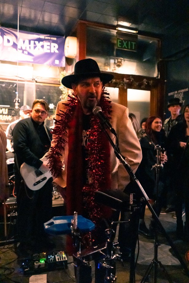 Starting the night, (not so) secret opener Max Bianco emerged from the shadows at Mr Steve’s request to flashback to that previous year. Sporting his standard fur hat, he took to the stage with his bouzouki for a sweet and short 3 song set.