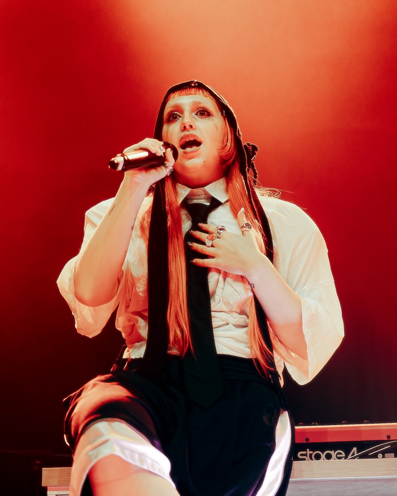 One of the most memorable moments of the first half of her set was her stripped-back piano rendition of “crybaby,” which showcased her tremendous vocal range. Near the end of the song, she delivered impressive riffs reminiscent of Ariana Grande, culminating in a stunning whistle tone that left the audience in awe. This is one of my favorite songs from her catalogue, and she took it to the next level, thrilling the audience with a frenzy of cheers and applause.