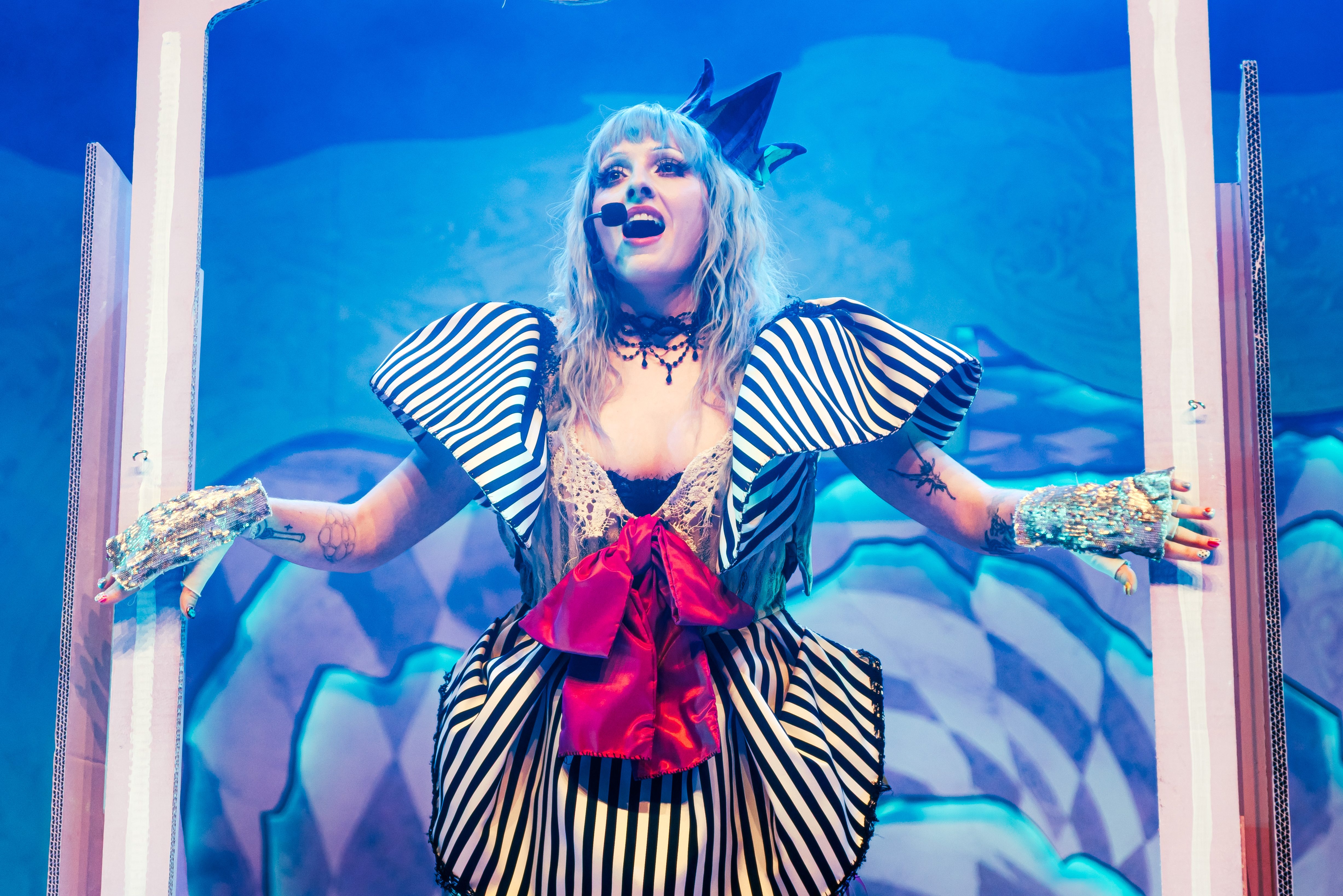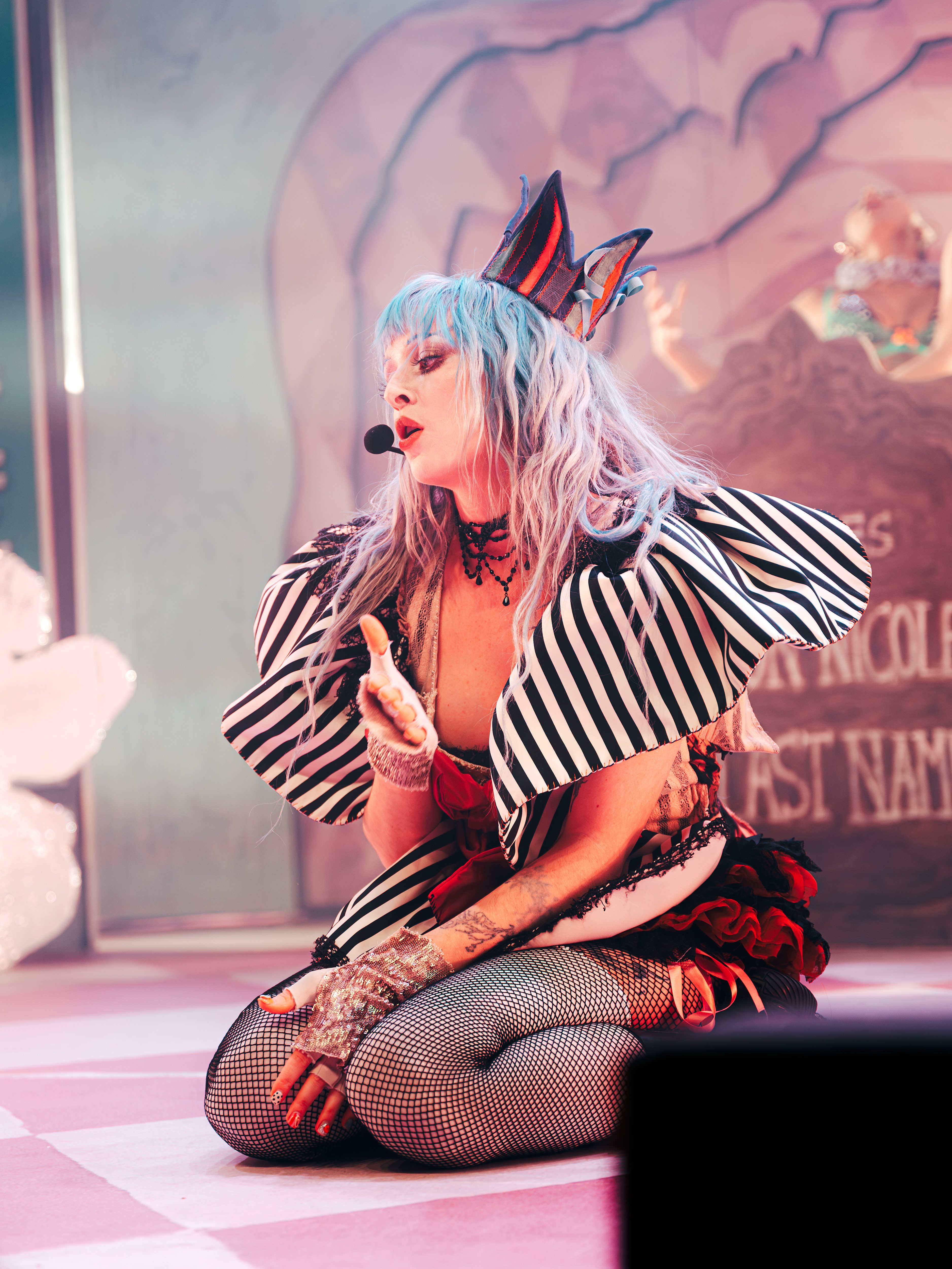 She then asked the crowd if they had brought their trinkets and who had traded with whom. At that moment, the audience began showcasing their amazing outfits and displaying the items they had brought. Some fans even handed items to her onstage for her to show off. This was the first sign this show would be super interactive, and I was loving all the cool headpieces and other items the fans must have spent hours, if not days, creating.