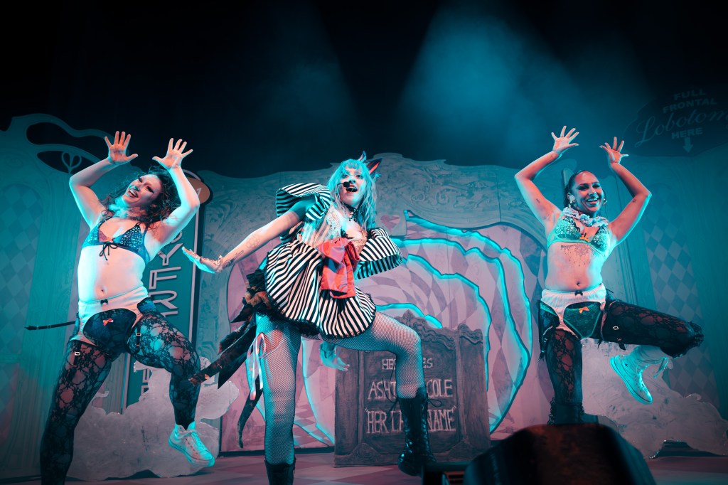 Next, Ashnikko shared a poem with the crowd, starting with the line “Fat pussy like Santa,” which immediately elicited loud cheers from the fans as they recognized she was about to perform “Manners.” This song has been featured on every setlist so far, and Ashnikko consistently gets the audience to wave during the chorus.