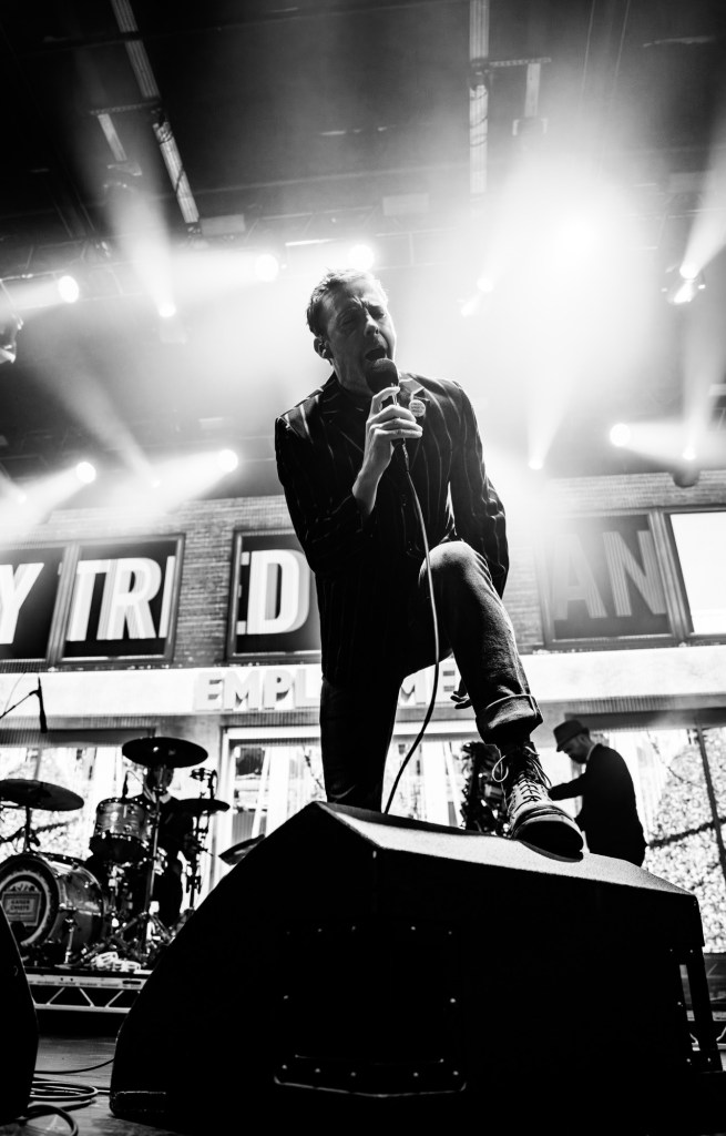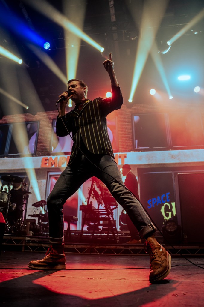 The crowd was greeted by a pre-show video followed by Jurassic park theme music. As the band took to the stage they came on to the wonderful ‘Walk the dinosaur’ which I was not expecting but the crowd LOVED it! Such a fun, unexpected way to start a legendary set. They of course played ‘employment’ in full starting the set with ‘Everyday I Love You Less And Less’ such a catchy song with a contrast to the song’s theme of falling out of love – everyone knows this song everyone sang along a sold out Victoria Warehouse as loud as ever. I didn’t think the crowd could get any louder but as the intro came on for ‘I predict a riot’ oh did the crowd prove me wrong – the energy from the band (especially Ricky) was shared with the packed out audience.