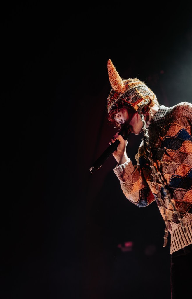 The support act for the show ‘Dreamer Isioma’ is also quite a renowned artist that matches the energy that Cavetown brings to all of the gigs which makes them a perfect opener to get the crowd ready for the main act ahead. Tonight they were joined by the amazing guitarist Dante Swan who is insanely talented. Dreamer came out with the hit single ‘Sensitive’ which came out back in 2020 and went viral on Tiktok which made them known internationally. They started the night perfectly with the most energy I’ve ever seen – from jumping around to even getting into the crowd at one point – they brought it all and the crowd loved every second of it. They played many of the songs from their latest album ‘StarX Lover: Supernova’ and even the crowd was singing along to plenty of the songs. They also played their new release ‘Smile’ which is set to be released in two weeks and I can almost guarantee everyone who heard it will be streaming it as soon as it’s released – it was an upbeat song that everyone was jumping around to. And of course they played the viral hit ‘Sensitive’ which was sung back to them by the high energy crowd. I will definitely be catching Dreamer Isioma at another show soon…