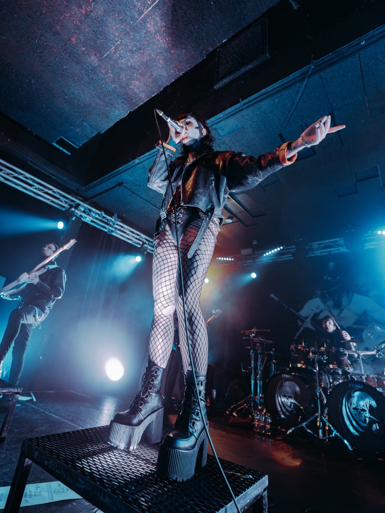 Opening with “Mistress of Death,” Creeper wasted no time in reminding everyone why they have built such a passionate following. As the lights came up, the attention to detail in their presentation became clear. Black and white face paint, streaks of blood at the mouth, and matching leather jackets created a cohesive vampiric aesthetic that tied perfectly into their current era. Frontman Will Gould stood out with an eye patch, adding another layer to the band’s theatrical storytelling.